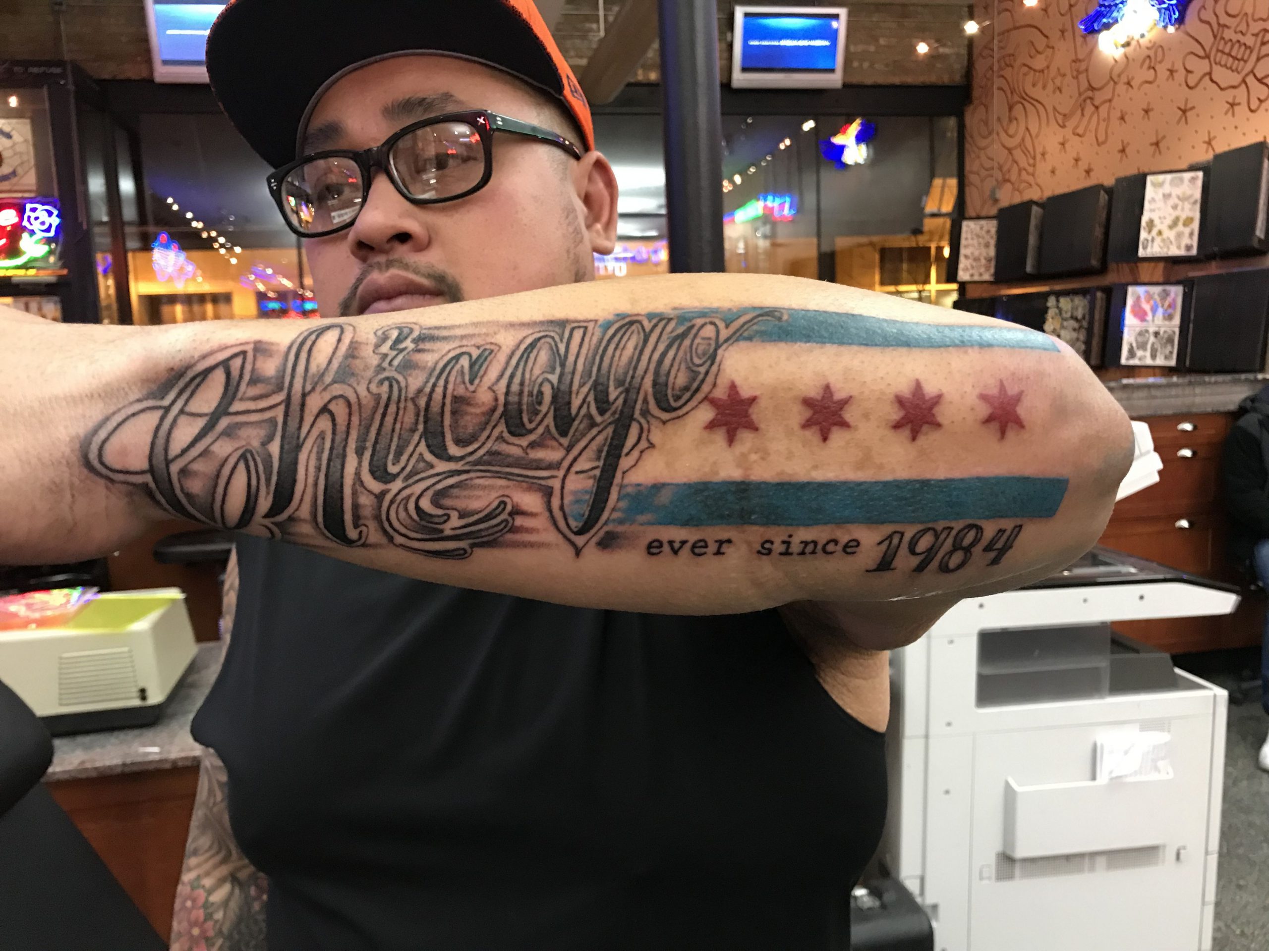 “Also, there has to be a Chicago Star in the font, because nobody ever knows how to draw that thing right, and there are a lot of tattoos out there. Some might need their stars fixed.” Chicago’s percentage of citizens with city flag tattoos is rivaled only by the number of people in Washington D.C. who sport their own.