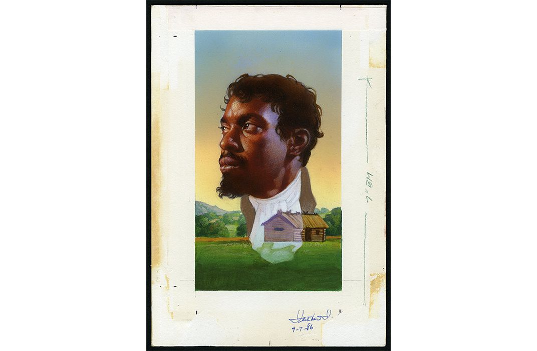 Jean Baptiste Point du Sable, as painted by Thomas Blackshear II, for the USPS in 1987.