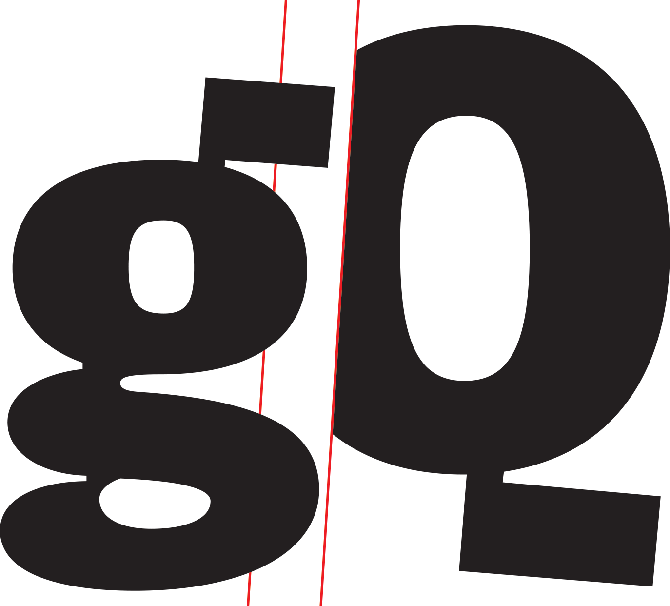 In contrast, I designed a jutting promontory to be g’s ear and Q’s tail; little angular jetties sticking out into a sea of roundness.