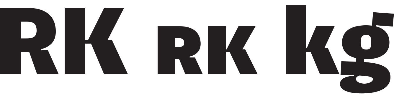 Angularity also shows up in alts for K, R, g, and k. Their lower strokes and legs jut with the same enthusiasm as g and Q.